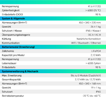 - Lithium-Eisenphosphat-Batterien: Langlebig und sicher mit 10-Jahres-Garantie³